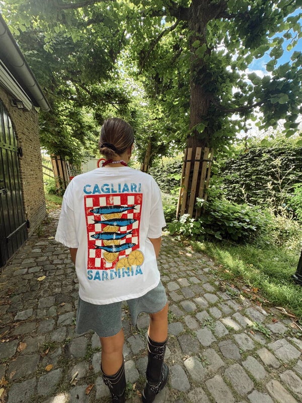 Dit Cagliari Sardinia T-shirt is een heerlijk oversized shirt dat meteen het vakantiegevoel in je garderobe brengt. Het losse model en de vrolijke print maken ‘m perfect voor zomerse dagen of festivals. Combineer met een denim short, stoere boots of slippers en je bent klaar.