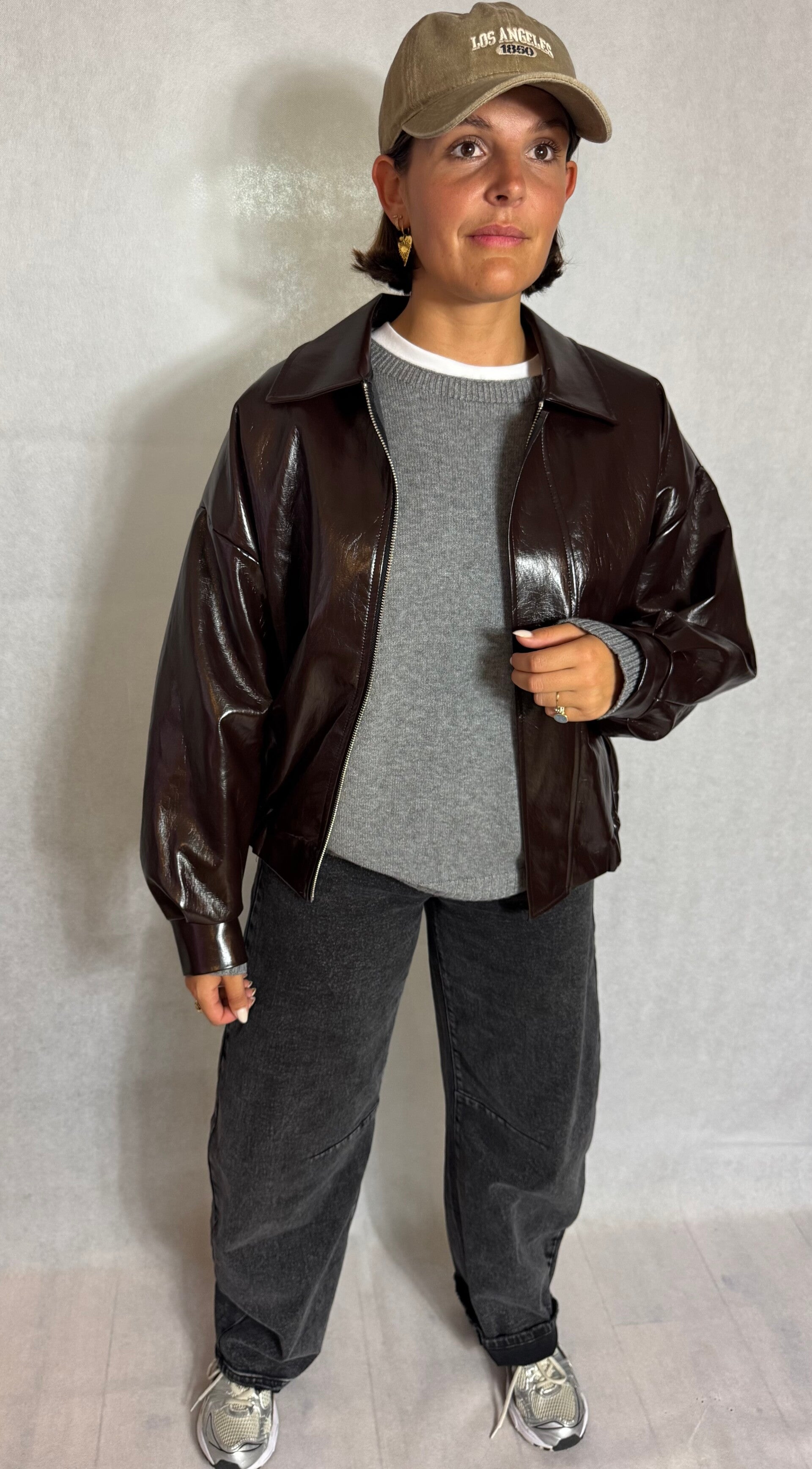 Deze lakbomber is echt de trend van nu, met een oversized fit en ritssluiting. Perfect als tussenjas en maakt iedere outfit compleet.