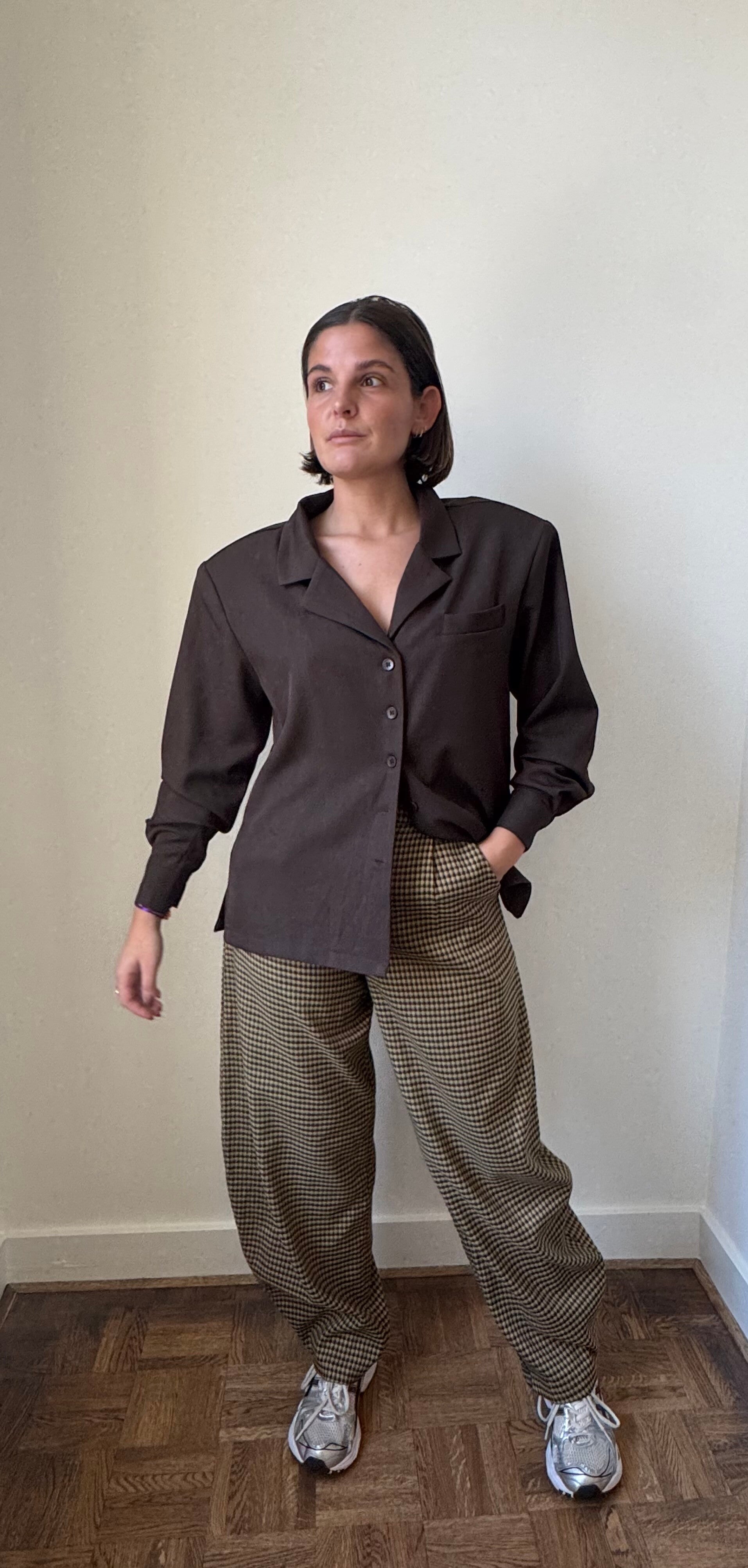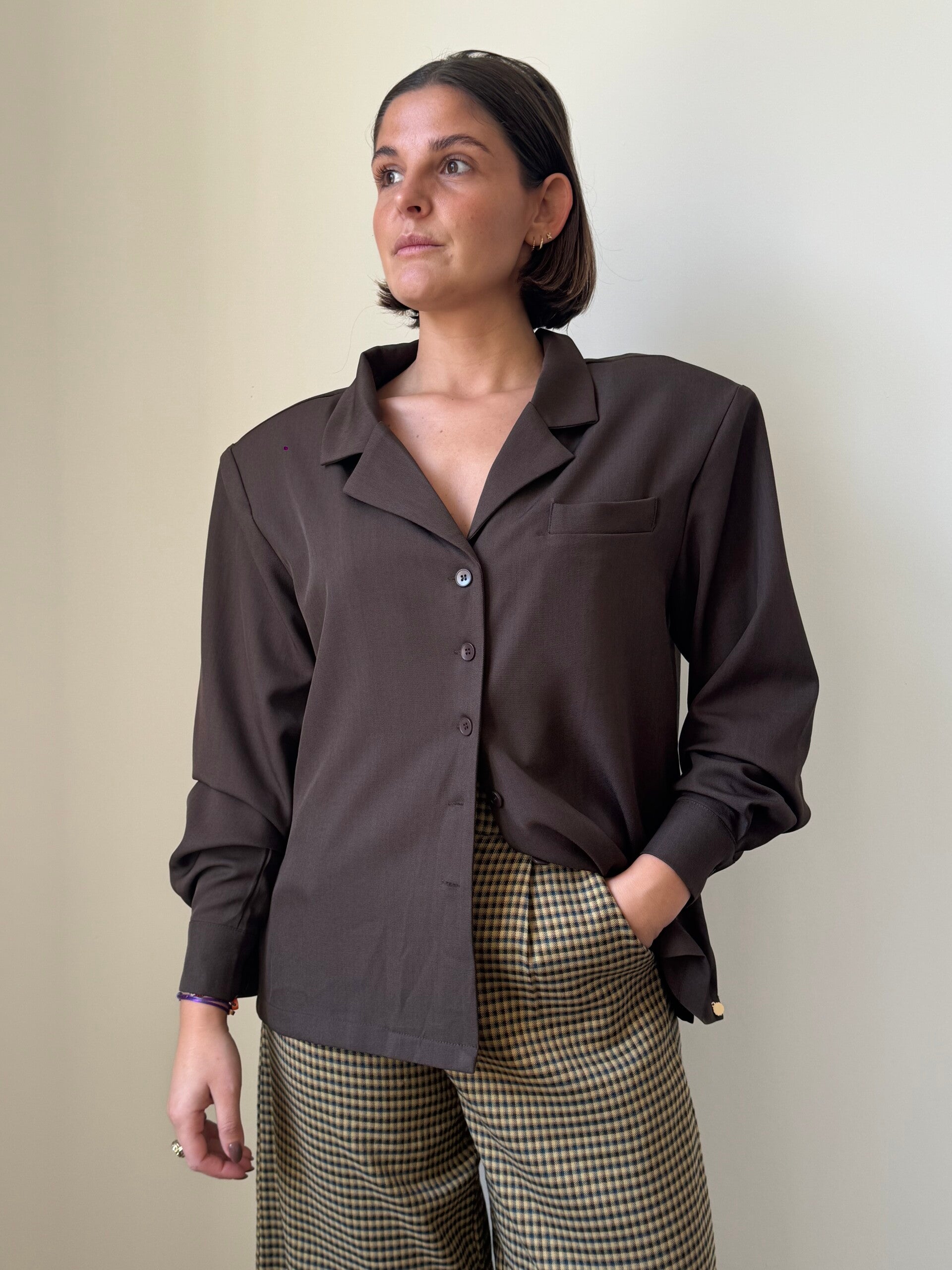 Cool oversized blouse met blazer kenmerken zoals schoudervullingen, revers en knoopsluiting.